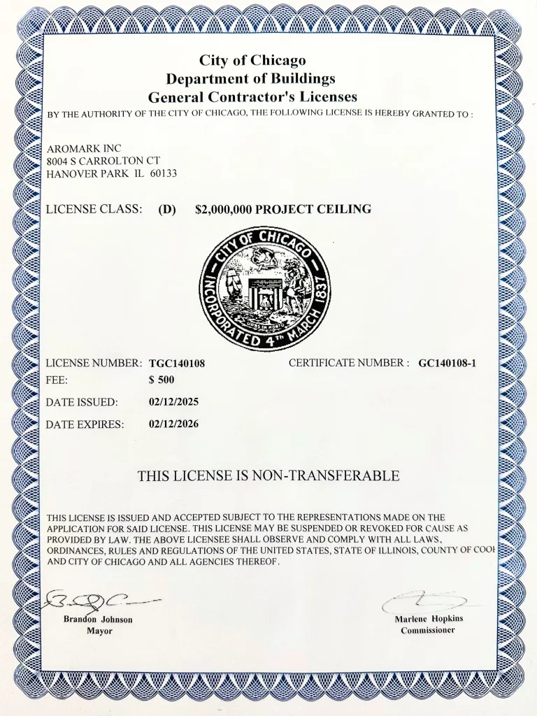 Aromark is now a licensed General Contractor for commercial properties, offering full construction and renovation services for offices, retail, and industrial spaces.