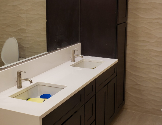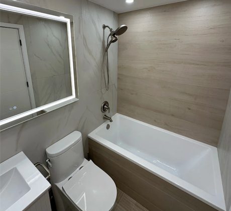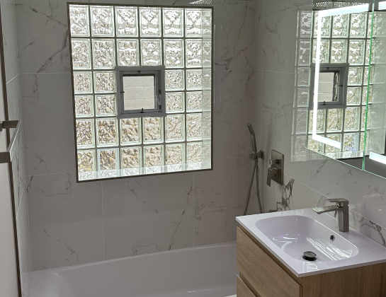 Small Bathroom Transformation Highland Park, IL Our challenge was to reimagine a compact bathroom and create a seamless, modern shower area. Here’s what we achieved: Designed a curb-free shower zone with a sloped tile drain (linear drain) for easy access. Updated all plumbing and electrical
